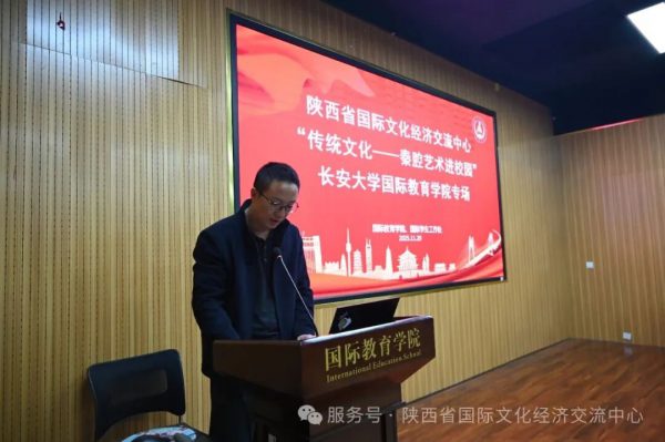 陕西省国际文化经济交流中心党支部书记吕瑞山为活动致辞。他表示,文艺活动是增进中外友谊、搭建民心桥梁的重要载体,此次活动为外国留学生提供了“听懂”陕西的窗口。希望留学生们以此次活动为契机,加深对中华传统文化的理解和认同,做文化交流的使者,向世界展示陕西独特的文化魅力。来自西安秦腔剧院的著名演员闫慧子和刘馨媛老师表示,要大力弘扬中华优秀传统文化,做好秦腔艺术的保护、传承与发展。